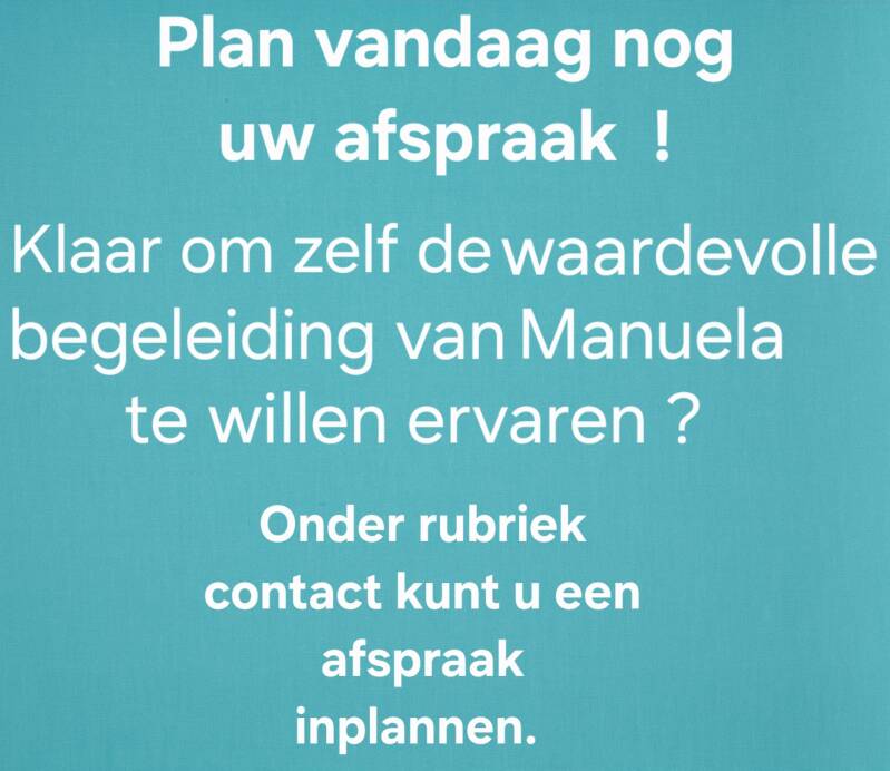 Mensen maak een afspraak met haar, of bel Manuela. Je zult versteld staan hoe goed ze je op weg helpt .